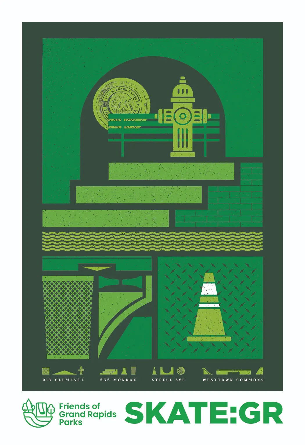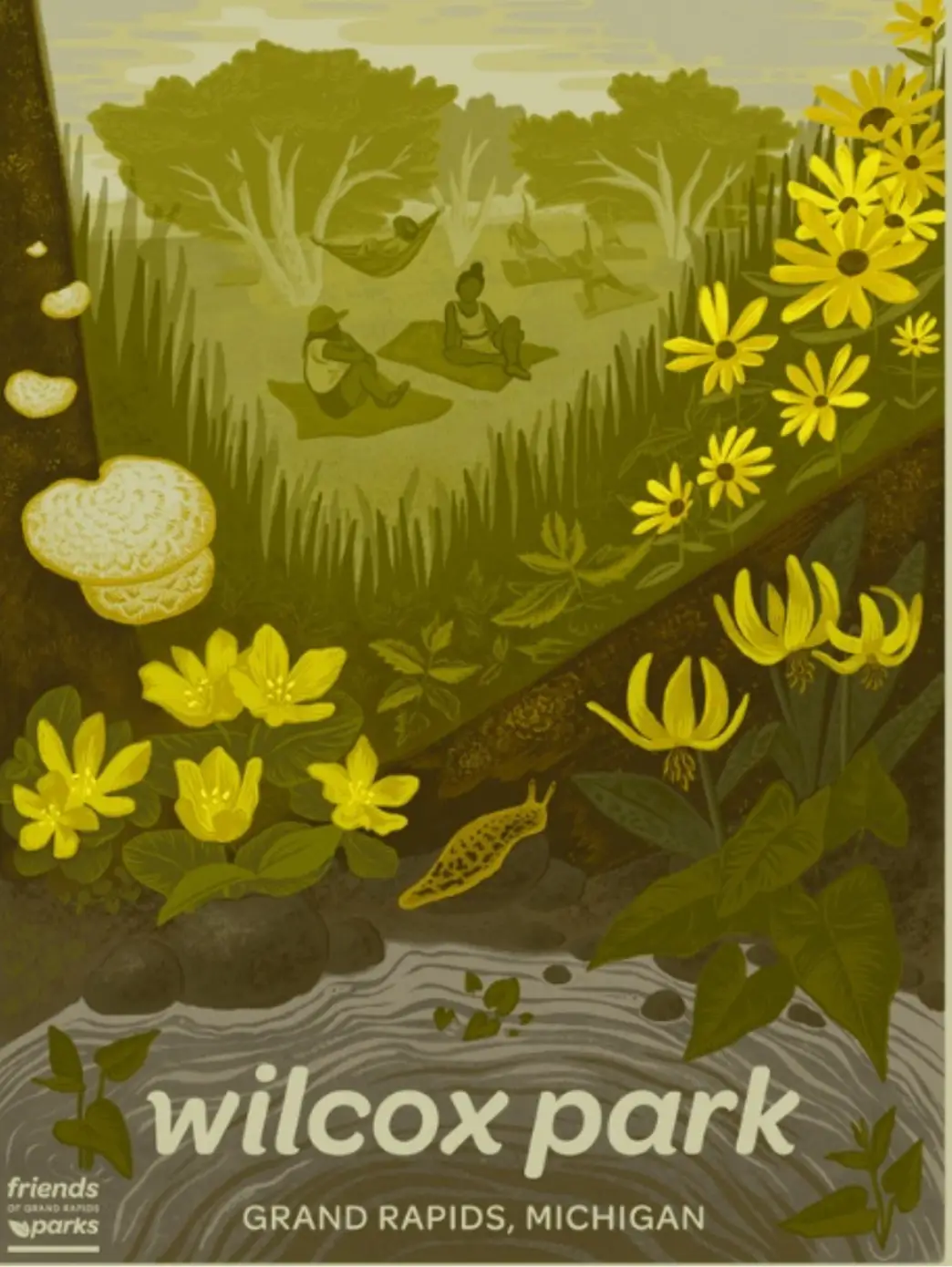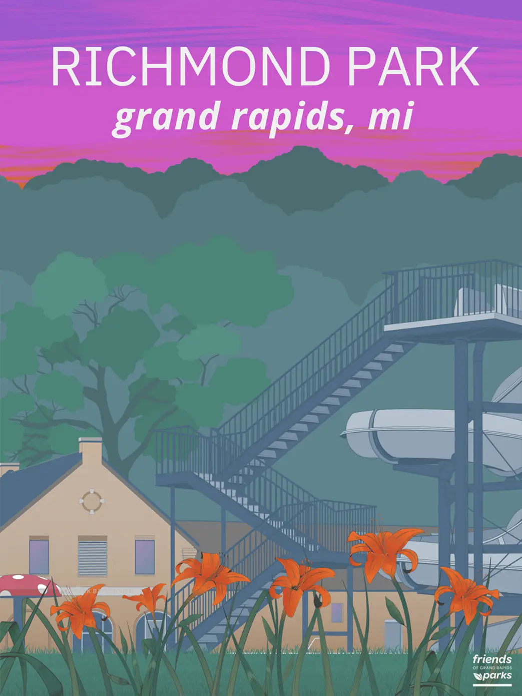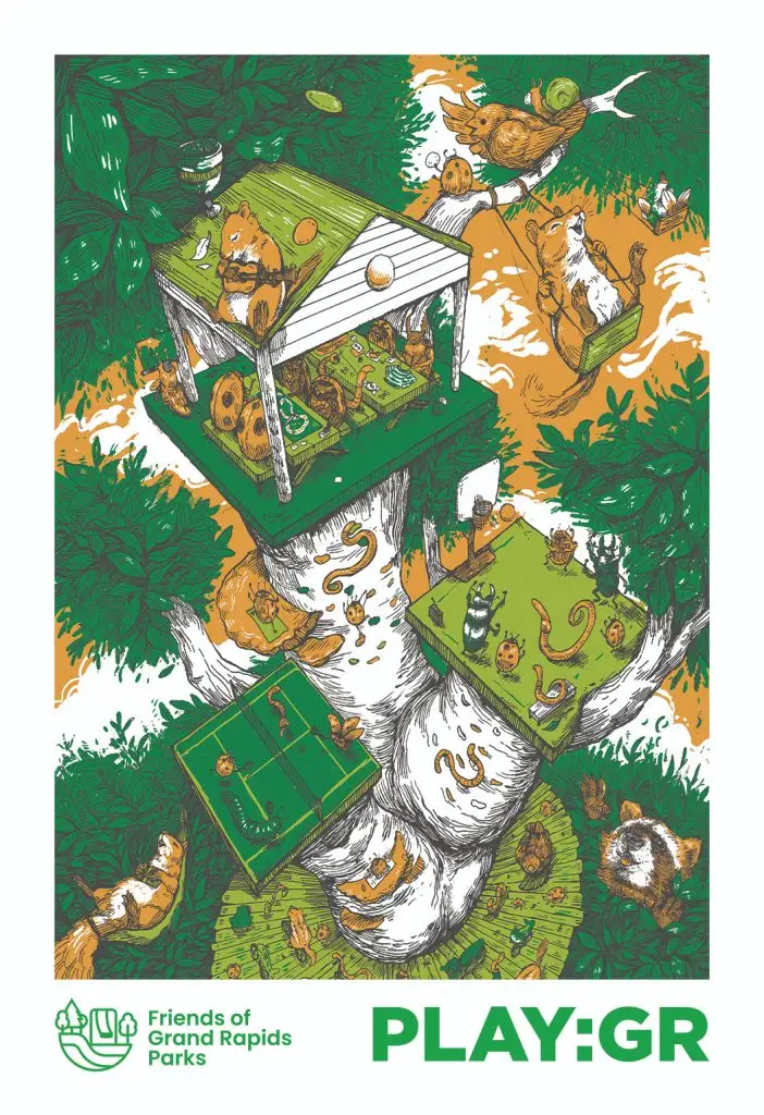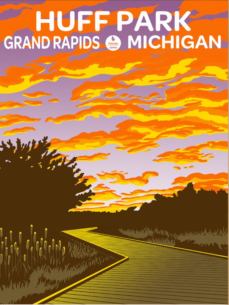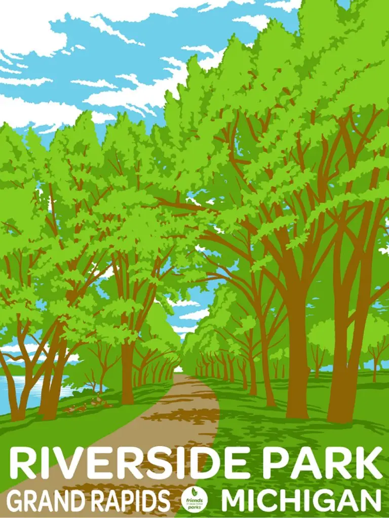 Our parks poster series is no longer in production. Thank you to everyone who supported this project—we hope you’re still enjoying your Grand Rapids Parks posters!
