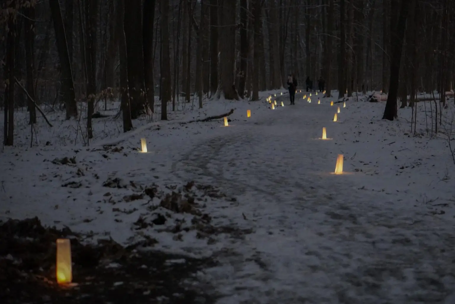 The luminaries will mark the boardwalk and trail, but we recommend bringing a flashlight or headlamp and wearing boots to navigate the unplowed paths.
