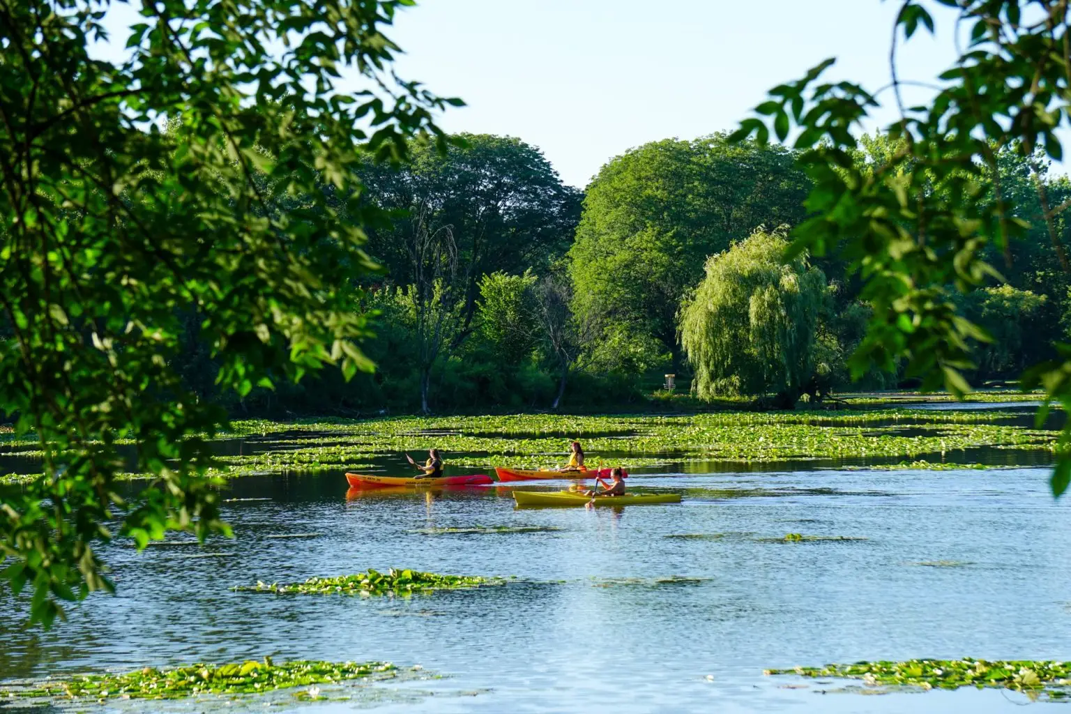 Basic kayaking instruction is included. This trip launches and ends at the Riverside Park Lagoon.